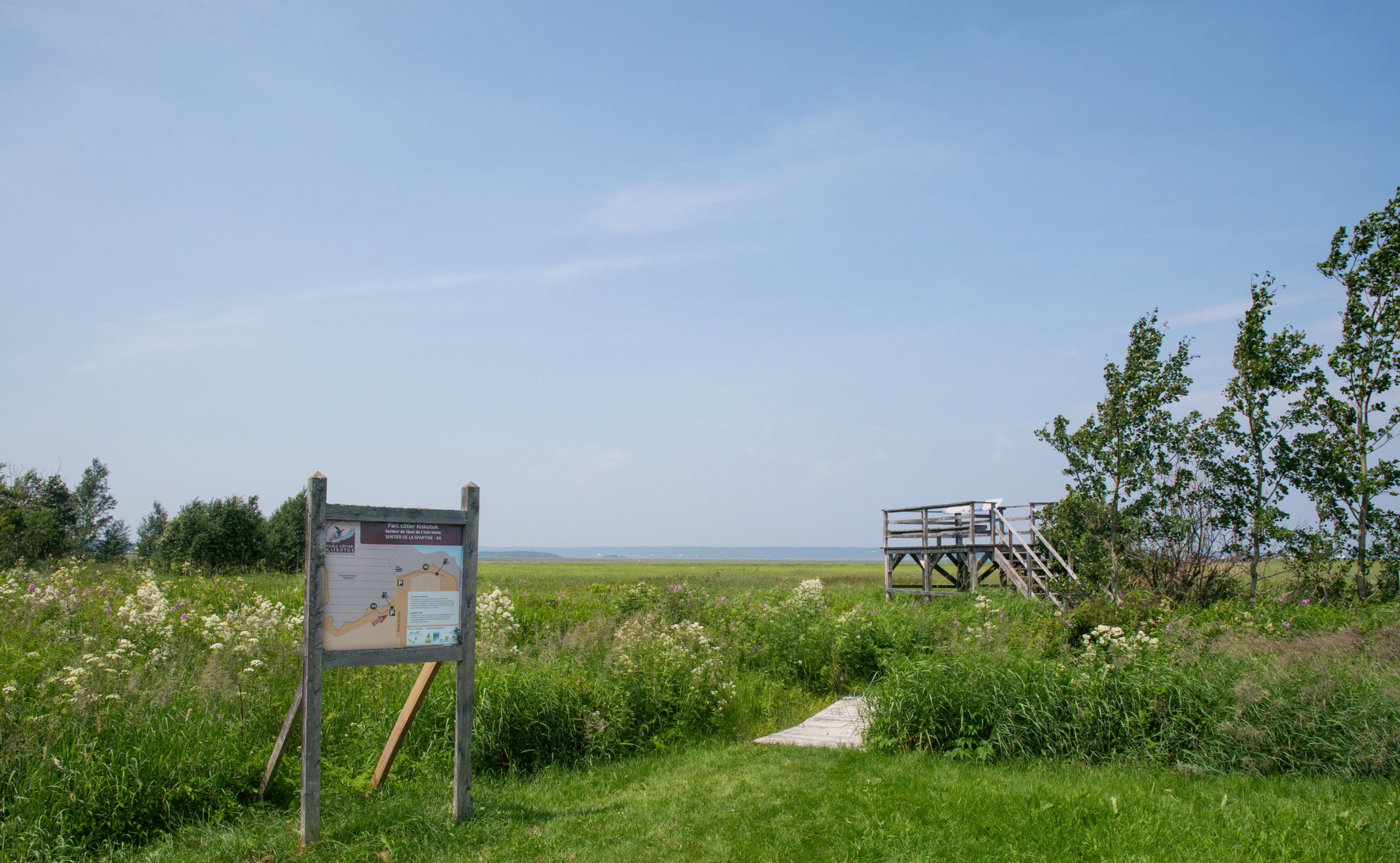 Parcourez les sentiers de la rive sud de l’estuaire et observez le plus grand marais salé à spartines du Saint-Laurent.